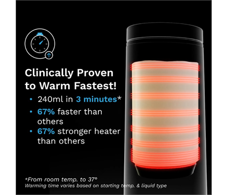 - Clinically Proven to Warm FASTEST: Warms 67% FASTER than other portable warmers due to 67% stronger heater (100 vs 60 watts); Warms 236 ml in 3 min. (from room temp to 37°C)