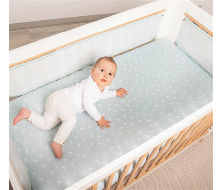 Unlike padded cot bumpers, the Bubba Blue Air+ Cot Liner allows optimal air to flow through the liner's mesh. It will keep your little one's limbs and pacifiers safely inside the cot without the risk of restricted airflow. Its lightweight, air permeable mesh helps reduce overheating.