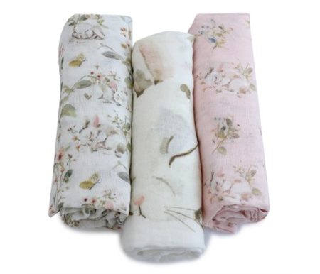 Bubba Blue Sleeping Bunny - 3pk Muslin Wraps