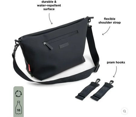 This black stroller bag is a practical and stylish way to keep your and your little one’s essentials organised and easily accessible. It attaches effortlessly to the carrycot handle using the pram hooks.