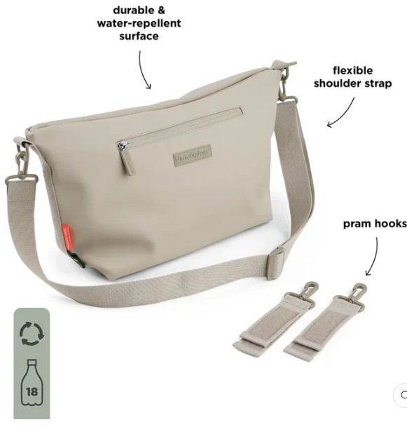 This soft sand-coloured stroller bag is a practical and stylish way to keep your and your little one’s essentials organised and easily accessible. It attaches effortlessly to the carrycot handle using the pram hooks.