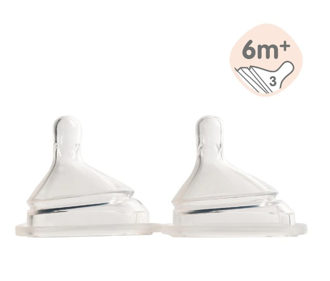 Our velvety soft, elliptical shaped teat closely mimics a mother's lactating breast while the off-centre teat design promotes upright feeding - similar to a position in which babies are nursed - to reduce the risk of milk back-flow and resulting mid-ear complications and colic.