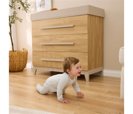 The Hallee Chest with Removable Changer combines elegant design with practical storage, making it the perfect addition to any modern nursery. Crafted with warm natural wood tones and soft hues, this versatile piece grows with your family, seamlessly transitioning from a changing station to a stylish dresser that will last for years.