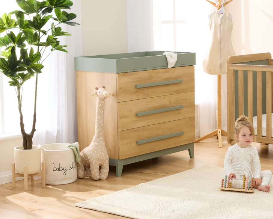 ✔ Sage & Golden Oak – Pairs beautifully with the Misha Cot in Sage & Golden Oak, creating a calming, nature-inspired nursery.