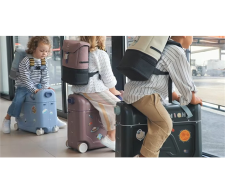 - Airline-approved ride-on luggage that turns any seat into a bed