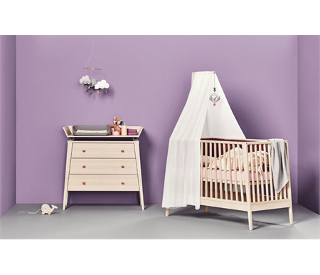 The stylish Linea baby bed by Leander is designed with the urban lifestyle in mind. The look is minimalist, precise and sophisticated. It is unique with its unusual angles creating a smart, urban look.