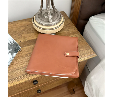 Double sided cream and tan folded soft vegan leather change mat.