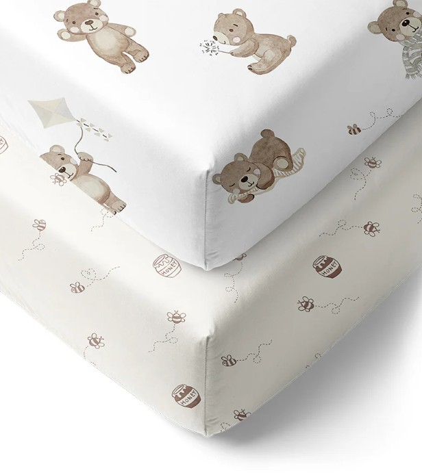 Living Textiles 2pk Jersey Cot Fitted Sheet - Cuddly Bear
