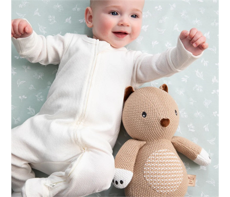 Beautifully crafted from mostly cotton with a pearl knit finish, they offer a lovely handcrafted feel. Each features a gentle rattle for playtime and comes with a sweet name label - perfect for cuddles, keepsakes, or gifting.