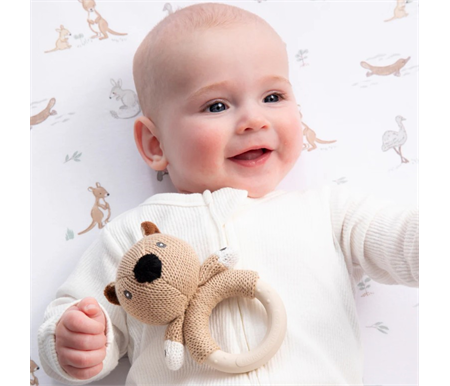 Living Textiles Australiana Ring Rattle - Wally the Wombat