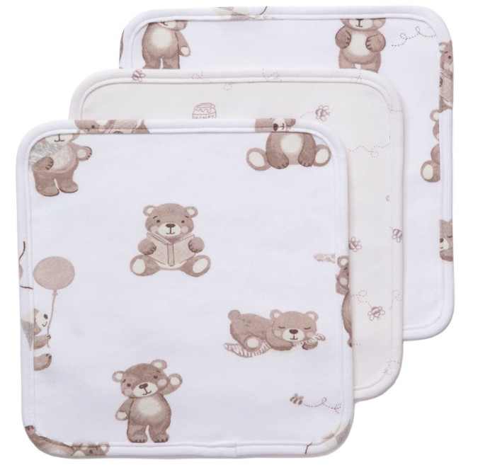 Living Textiles Cuddly Bear Wash Cloths 3pk