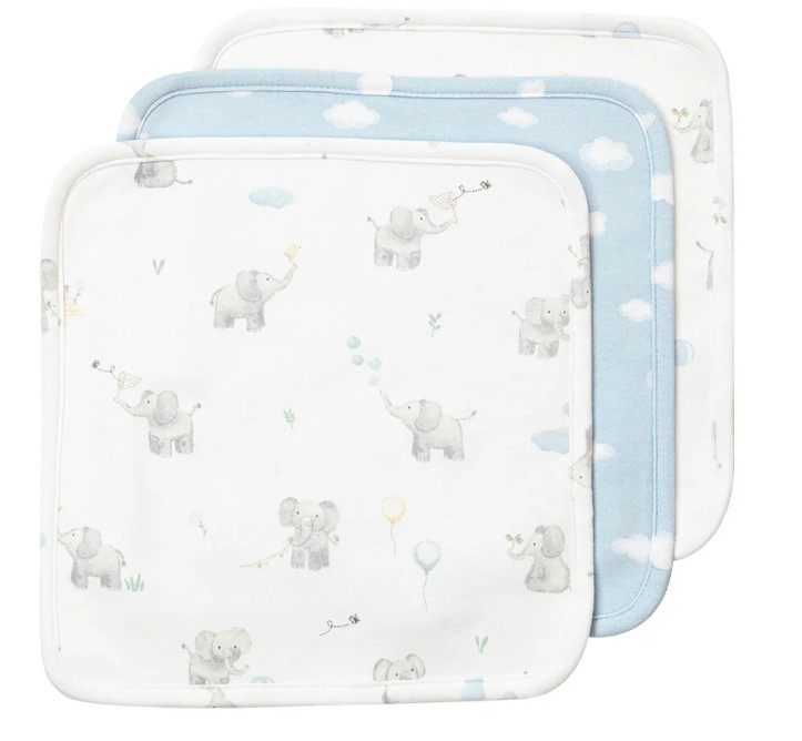 Living Textiles Elephant Playtime Wash Cloths 3pk