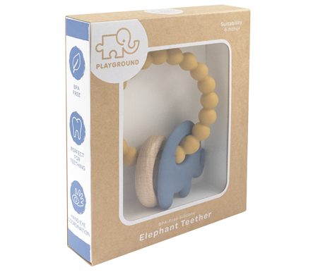 Living Textiles Playground Silicone Elephant Teether - Steel Blue