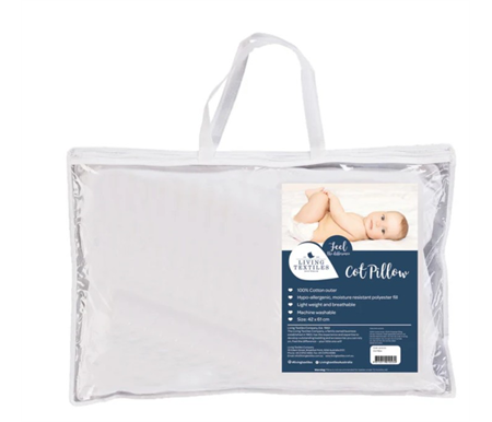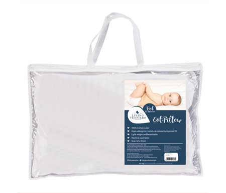 Featuring a 200tc premium 100% cotton cover, our cot pillow is filled with a hypo-allergenic polyester fill that resists moisture build-up. Lightweight and breathable, our toddler pillow is super snuggly and machine washable...just in case.