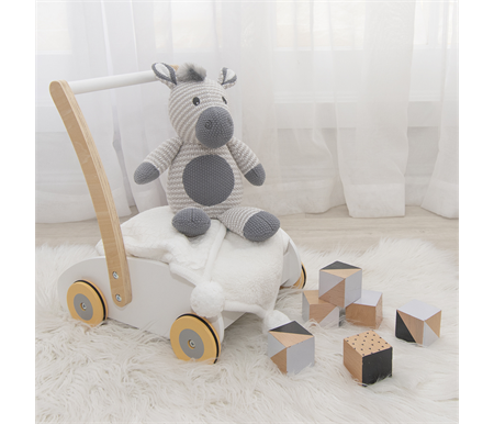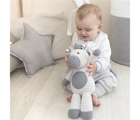 Delight your little one with the charming Living Textiles Zac the Zebra knitted toy. Made from 100% cotton in a purl knit finish, he has a soft jiggling rattle to keep baby entertained.