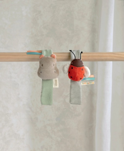 - Cute animal wrist rattles in super soft jersey fabric with baby-safe fastenings to be gentle on delicate skin.