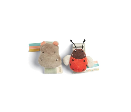 Mamas & Papas - Babyplay 2pk Wrist Rattle - Hippo / Lady Bird