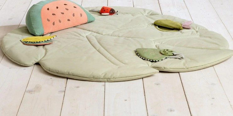 Let your little one’s imagination run wild with our safari-themed baby play mat. Shaped like a plush jungle leaf, this soft, cosy mat is perfect for tummy time fun or some supervised rest and relaxation. With tactile fabrics, crinkles, rattles, and squeakers to explore, baby will love discovering a world of sounds and textures. The deliciously cute watermelon cushion helps with their tummy time, while the handy teether provides comfort when they need some soothing downtime.