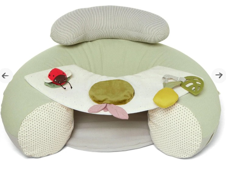 - A safari-inspired, interactive sit-me-up chair designed for babies who are almost sitting to develop core strength and help them learn to sit independently whilst enjoying playtime.