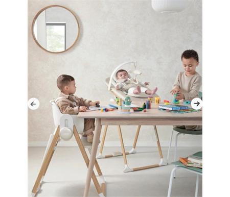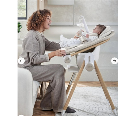 - Easy clean, easy access harnesses - anti-nip bouncer harness, and magnetised silicone highchair harness.