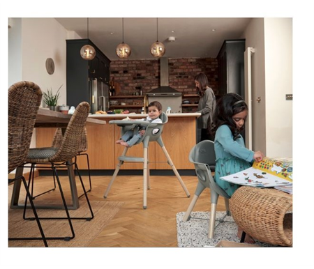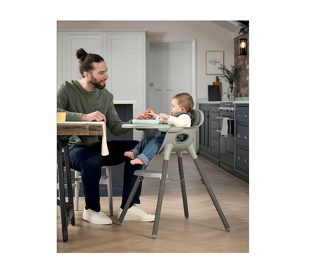 Juice highchair in Washed Grey looks on-trend and blends effortlessly into a modern home.