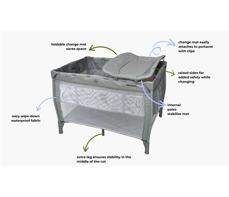 The 3 in 1 Portacot Grey Playyard/Travel Cot has been designed for parents on the go. This is perfect for varied sleep and play times with a soft mattress for additional comfort while sleeping or playing.