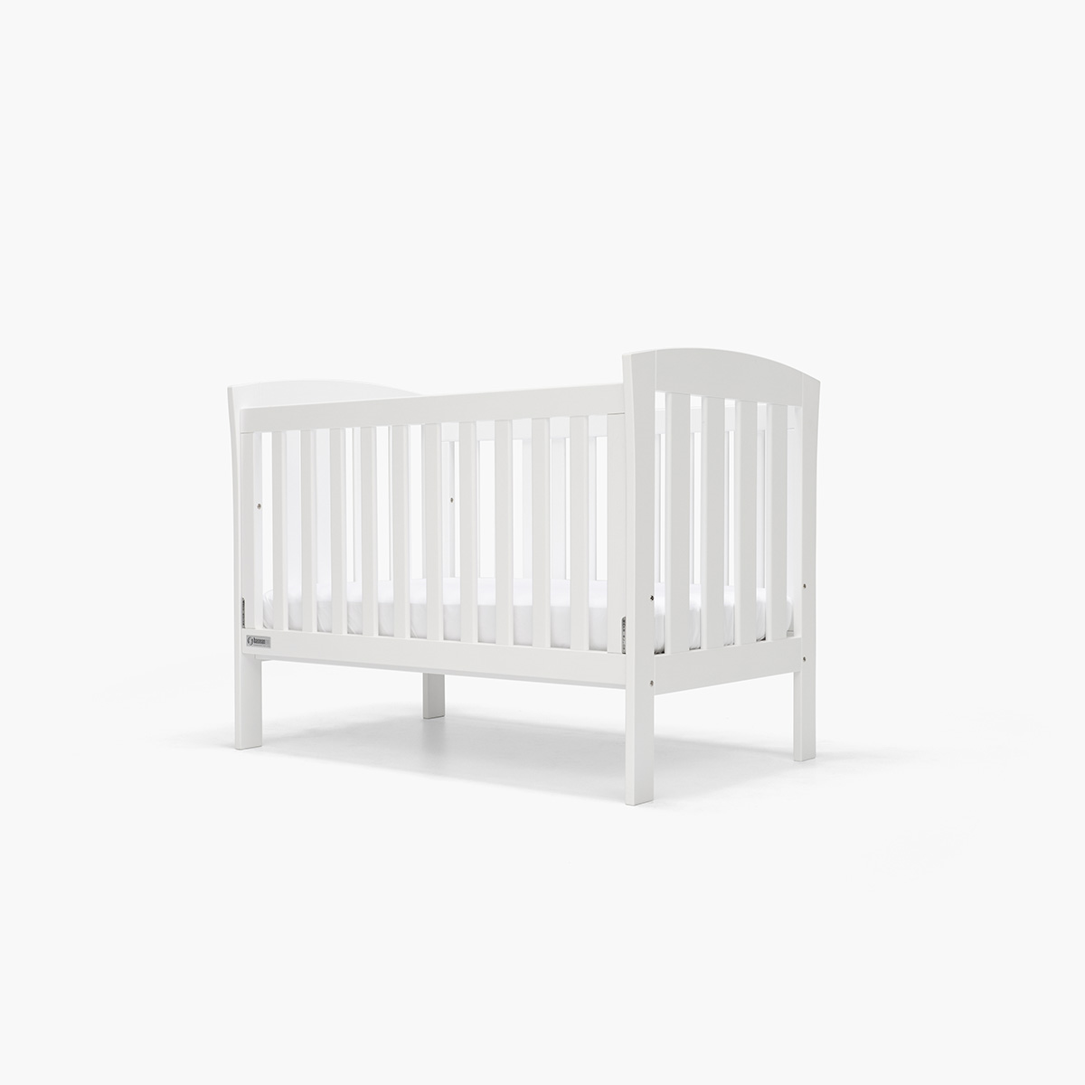It features two base heights so it can be converted from a bassinet height to cot height, and then to a toddler bed by removing one of the sides. It also has the ‘Safety-Slide’ drop mechanism, making the dropside panel easy to use.