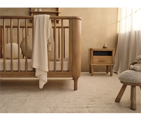 This Tasman Eco Willow Package - includes the Cot, 3 Drawer Chest, Bedside Table, 3 Tier Shelf and the Rolled Pocket Spring Mattress