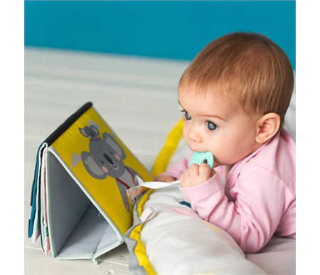 - Crinkling pages for 2 development stages includes: baby-safe mirror, crinkling shapes, 3D activities and textured fabrics and with Joey baby koala teether toy cuddled in his mamma's pouch