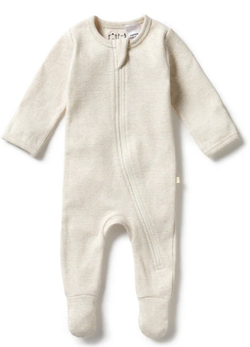 Wilson & Frenchy - Organic Stripe Rib Zipsuit with Feet - Oatmeal - Organic Stripe Rib - 6 to 12 months
