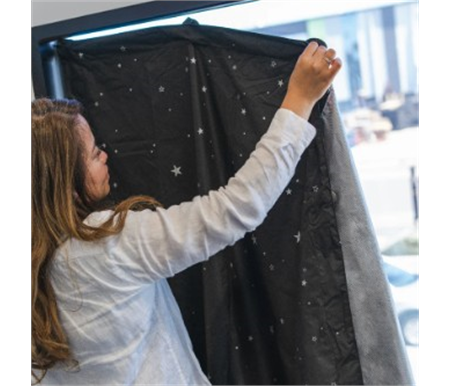 Help your little one drift into deeper, longer sleep with the Zazu Portable Blackout Curtain. Designed for families who value both rest and flexibility, this curtain transforms any window into a sleep sanctuary, no tools, no hassle. Featuring suction caps that attach directly to glass, you can create complete darkness in seconds, whether at home or on the go. The night sky print on the front adds a touch of calm, while the grey reverse backing helps reflect sunlight and heat, perfect for warmer days.